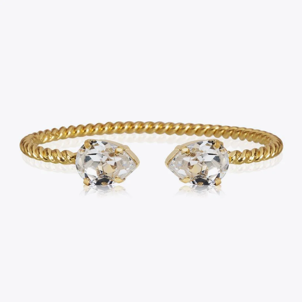 Vårt delikate Mini Drop Bracelet har to krystaller av høyeste kvalitet og et tauformet justerbart armbånd. Dette armbåndet er et perfekt detalj for enhver anledning.