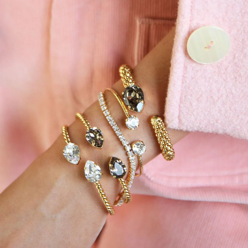 Vårt delikate Mini Drop Bracelet har to krystaller av høyeste kvalitet og et tauformet justerbart armbånd. Dette armbåndet er et perfekt detalj for enhver anledning.