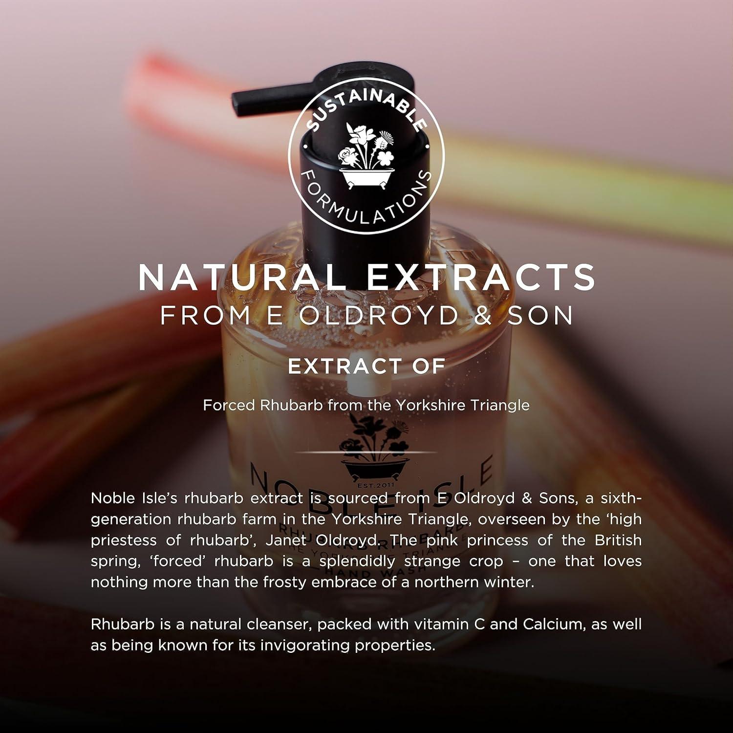 Noble Isle håndsåper og håndkremer lages i England, med resirkulerbar emballasje og næringsrike planteekstrakter hentet fra lokale produsenter rundt de britiske øyer. Rhubarb Rhubarb! er rik på vitamin C og kalsium, takket være naturlig rabarbraekstrakt kjent for sine oppfriskende og rensende egenskaper.
