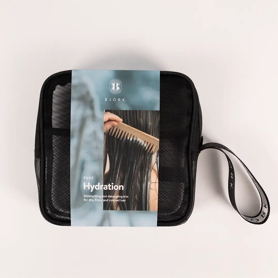 Fuktighetsgivende og mykgjørende trio for tørt, frizzy og farget hår. Fukt Hydrating Shampoo, Conditioner & Spray Conditioner